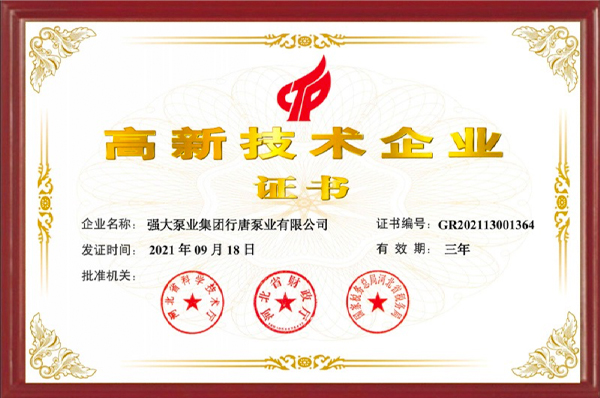 La industria de bombas kingda es la empresa de alta tecnología de China, la fábrica ecológica, la institución de investigación y desarrollo de nivel A, el centro de tecnología empresarial, el centro de innovación tecnológica, la empresa basada en tecnología, la unidad de director de la industria de bombas de la Asociación de la Industria de Maquinaria General de China y la unidad miembro de China Comité Técnico de Normas de Bombas 20 patentes, 16 patentes aceptadas.